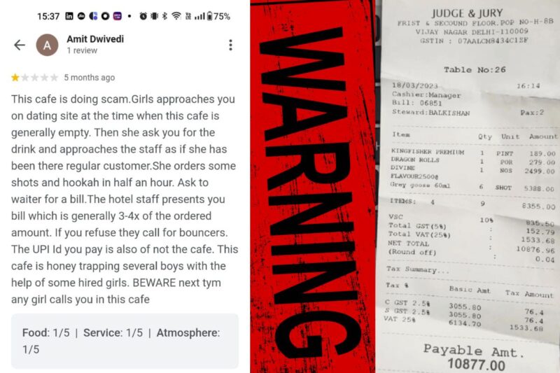 If you try to share the bill, the fraudster conveniently claims to have no means of payment, such as she isn’t carrying cash and doesn’t use a UPI or card, leaving the victim alone and responsible for settling the massive bill. Even if you try to do something here, the Café’s bouncers will resolve it in their own way, leaving the victim with little choice but to pay the full sum.