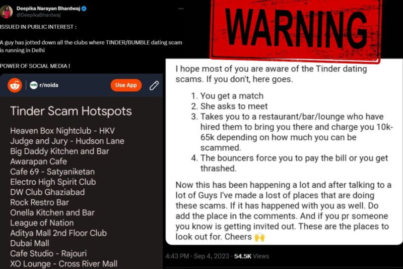 A 25-year-old journalist based in Delhi tells how he fell into a scam after he had a cafe meet with a girl whom he had connected over the dating app Bumble. He was billed ₹15,886 for a few drinks. He further reveals how such scams are going in the national capital, where girls are being employed to scam folks and dupe heavy amounts from them.