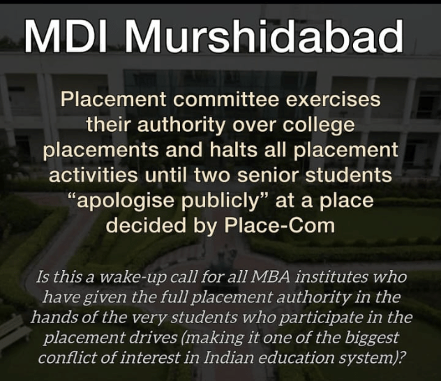 Placements in MBA are all the more important as it is a post graduate program for which many people leave their jobs and take loans. Hence, securing a good job is crucial to them. Exploiting this vulnerability are the placement committee members of these colleges, who are none other than the select students themselves.