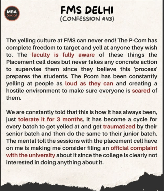 Surprisingly (or not), the incident has not been reported by any news media channel. The first source of information was an MBA community forum on Instagram called MBA Social. The story reported above was taken from a Free Press Journal article, which does not mention the name of the college.