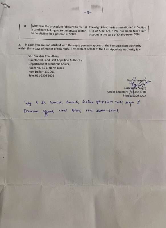 The Ministry of Finance has yet to issue a statement or clarification in response to these revelations. Meanwhile, the RTI response continues to fuel discussions on the importance of transparency and accountability in government appointments, particularly in roles as significant as the Chairmanship of SEBI.