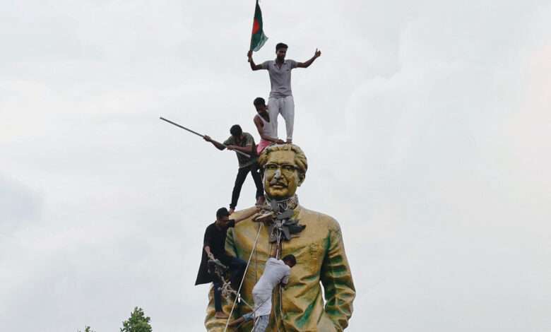After weeks of protests against a quota system for government jobs that descended into violence and grew into a broader challenge to her 15-year rule, thousands of demonstrators stormed her official residence and other buildings associated with her party and family.