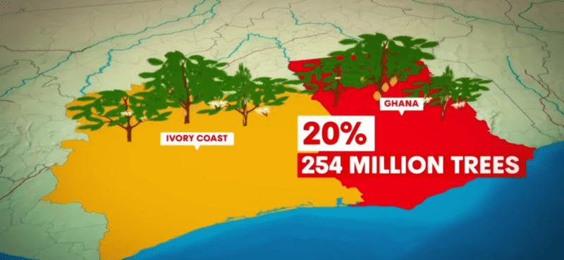 Ghana and the Ivory Coast in West Africa produce more than half of the world’s chocolate, but up to 20% of Ghana’s crops—roughly 254 million trees—have been impacted. Farmers were left with no choice but to burn them.