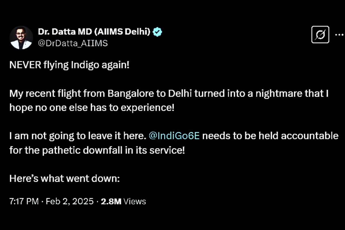 In February 2025, Dr. Suvrankar Datta, a Delhi-based doctor, complained about the airline maestroo, Indigo for poor on-flight service, citing a 30-minute delay in obtaining a pre-booked lunch, which worsened his hypoglycemia. Datta accused the crew of his Bengaluru to Delhi aircraft of deplorable arrogance and carelessness, claiming that their actions might endanger passengers’ lives.