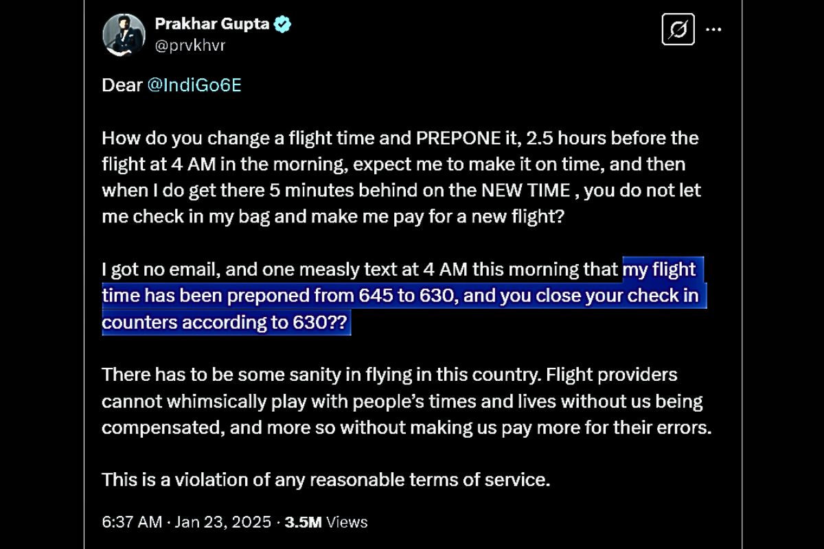In the cold winter of January this year, an X user posted a lengthy post outlining his horrible encounter at the airport. He has made numerous claims against IndiGo. The man said he missed his early morning flight when IndiGo preponed it for 15 minutes. The X user also complained about the airline staff, claiming they were unpleasant to him and his fellow passenger. He also mentioned additional instances of suspected “unprofessional” and “suspicious” actions by IndiGo employees.