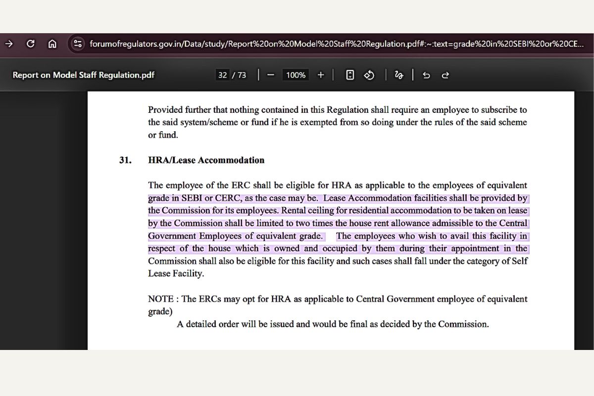 Likewise, a forum-of-regulators guideline (for generic commissions) states that “rental ceiling for residential accommodation to be taken on lease by the Commission shall be limited to two times the House Rent Allowance admissible to a Central Government employee of equivalent grade”. For a Secretary-level officer in Mumbai, CG HRA is around ₹24,000–30,000 per month, so 2× that is roughly ₹50–60,000 as a cap, far below ₹700,000. Even if SEBI’s internal policy were more generous, this model rule illustrates how unusually high the actual rent is.