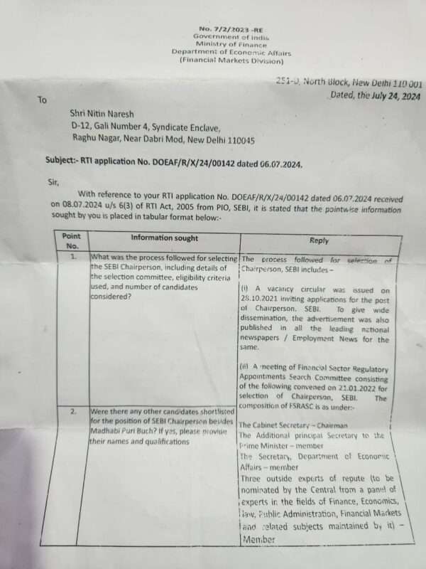 Was Madhabi Puri Buch Planted By Adani In SEBI, Even The RTI Says That Government Had No Information About The Merits Of Madhabi Puri For Selection As Chairperson Of SEBI
