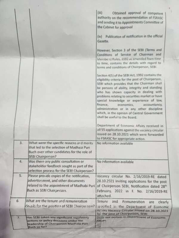 Even Inventiva has filed an RTI sometime back on the selection of madhabi puri buch and government and SEBI had no information about any merits based on which the Madhabi Puri Buch Was made the chairman of SEBI.