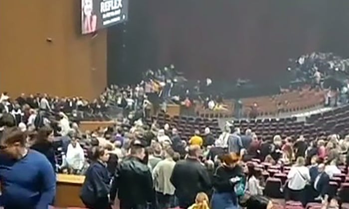 In response to the incident, Spetznaz and riot police units were dispatched, and a subsequent video shared by news outlets depicted law enforcement officers surrounding the concert hall.