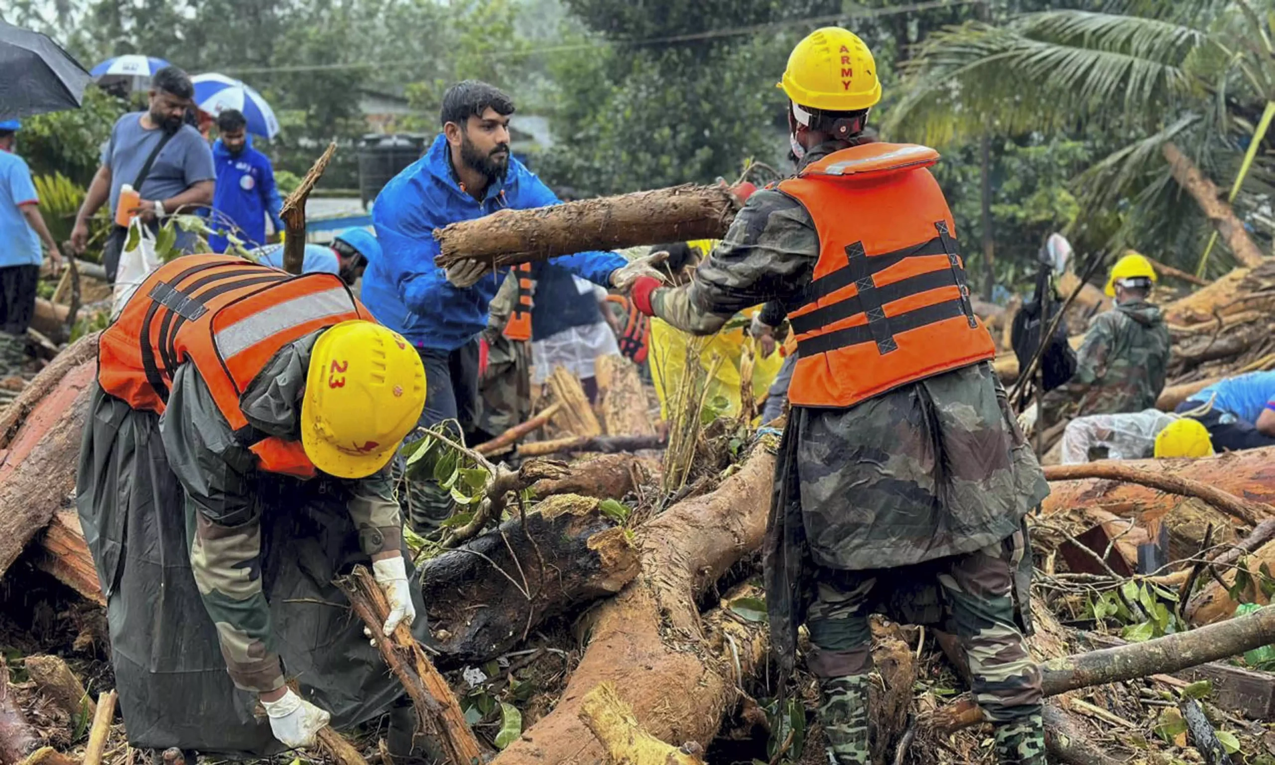 Three villages in Wayanad have been destroyed. Two hundred people have lost their lives, and there are still more than 200 missing people. Heavy rain was falling on the morning of 30 July at 2 am. People were sleeping in their homes, and the flood of sand, big stones, and trees came down. As high as two storeys, the whole village is washed away, and people are buried alive.